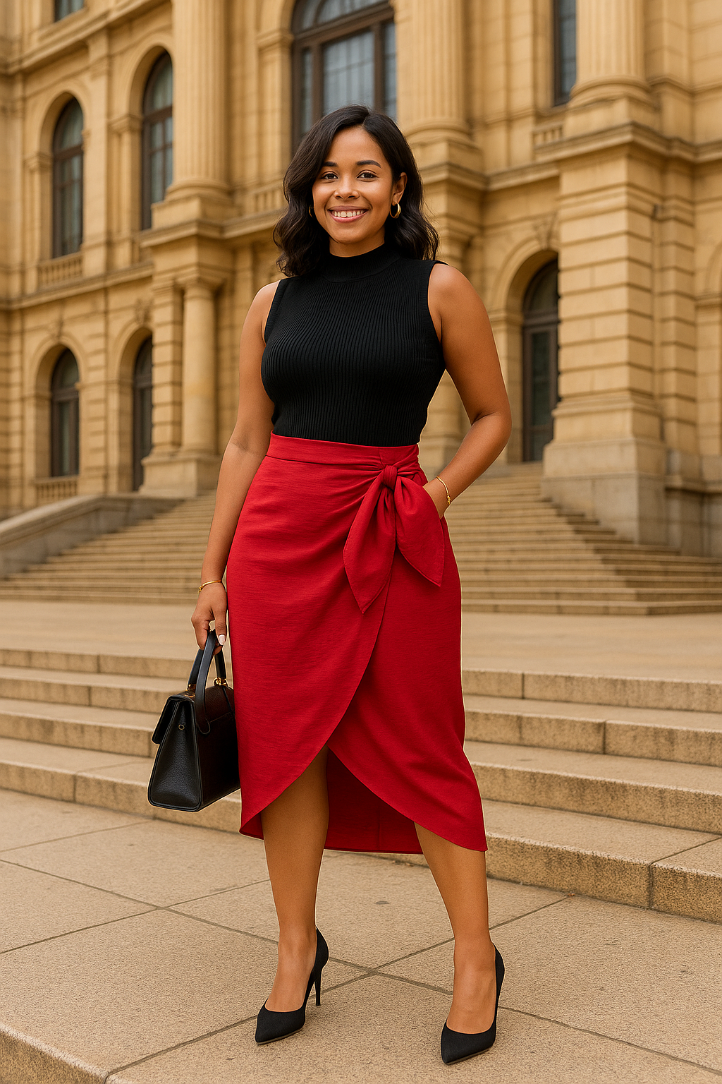 A Saia Amélia Midi com Amarração em tecido Kali Twill é uma peça curinga para quem busca elegância e conforto em um só look.